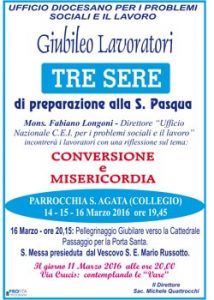 L'ufficio di pastorale sociale della diocesi di Caltanissetta, organizza tre sere (14,15,16 marzo 2016 ore 19:45) in preparazione della S. Pasqua e al Giubileo