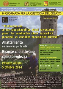 Creato: “Educare alla custodia del creato, per la salute dei nostri paesi e delle nostre città”, l’Ufficio della Pastorale Sociale e del Lavoro dell’Arcidiocesi di Palermo promuove un evento conclusivo il giorno 5 ottobre dalle 10.00 alle 19.00 all'interno delle Scuderie di Palazzo Alliata- Villafranca Piazza Bologni – Palermo -, che avrà come filo conduttore il tema: ALLATTAMENTO un percorso per la vita. Risorse che attivano consapevolezza.